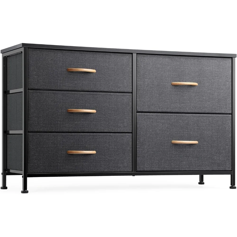 This versatile dresser serves multiple purposes and is suitable for various rooms such as bedrooms, closets, living rooms, nurseries, hallways, and next to the bedside. It also functions as a TV stand with ample storage drawers. The 5-drawer design is perfect for organizing items like lingerie, blankets, underwear, and children’s clothing. Constructed from high-quality materials, this dresser is known for its durability, smoothness, brightness, and resistance to wrinkling and mold. The drawers are sturdy and well-organized, thanks to the thickened wooden top board and metal frame with strong soldered joints. Safety is a priority with the inclusion of an anti-tip kit, ensuring stability and preventing accidents. Assembly is straightforward and can be completed in about half an hour.