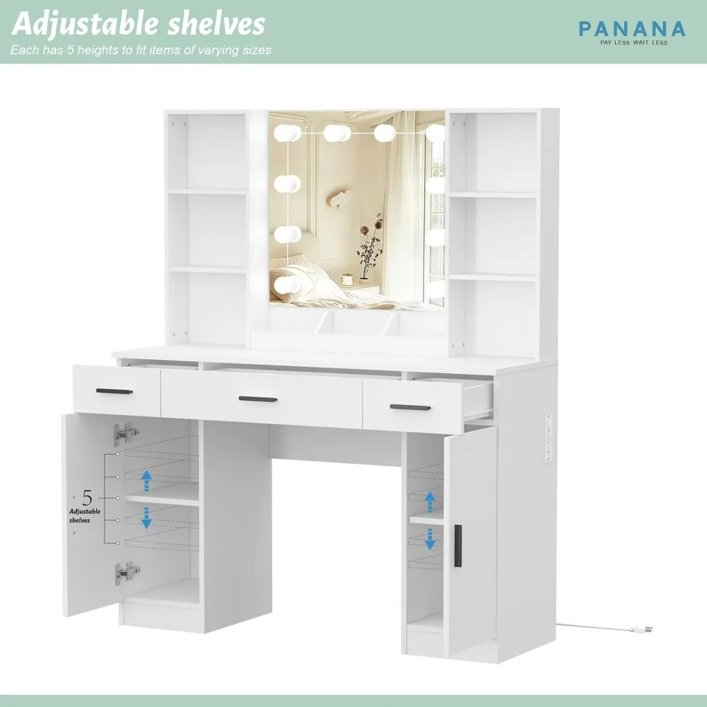 â–¶Modern Vanity Table with Storage Drawers, Cabinets, and LED Mirror – Black/White Options