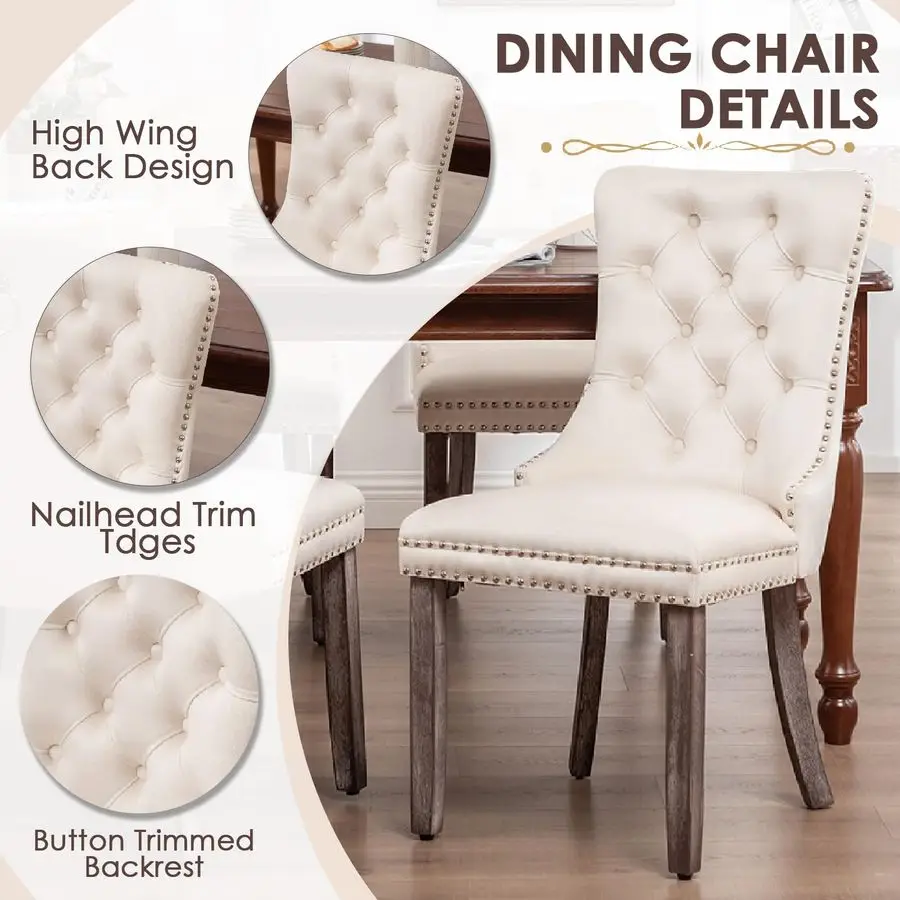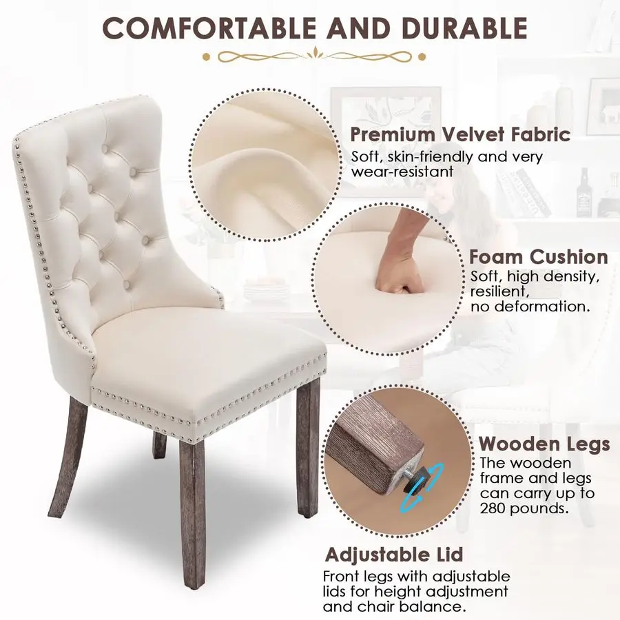 Premium amp Luxury Dining Chairs This kitchen chair set of 4 is made of skinfriendly velvet fabric and a solid wood frame. Button tufted backrests and nailhead trim lend luxury to the dining chairs. It can hold up to 300 pounds and is very sturdy and durable.